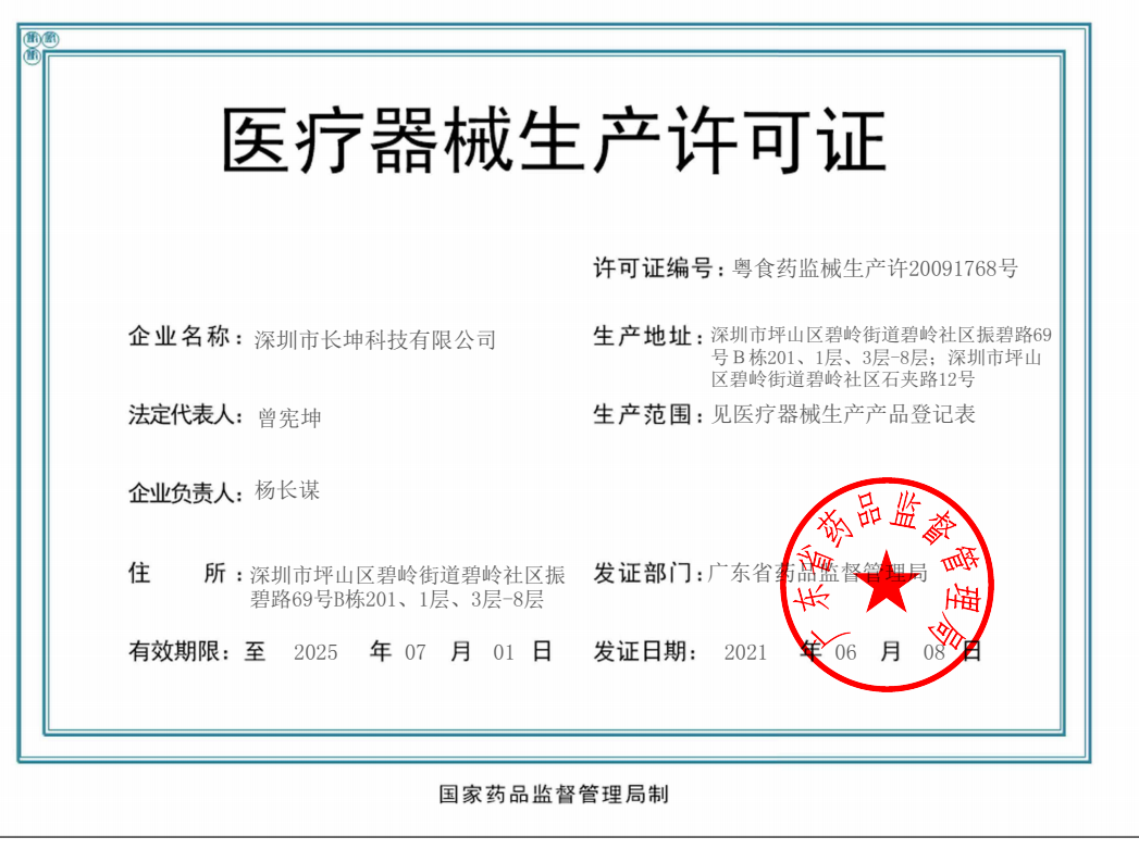 歡迎來到深圳市長坤科技有限公司官網! 粵深食藥監(jiān)械經營備20151166號 粵食藥監(jiān)械生產許20091768號